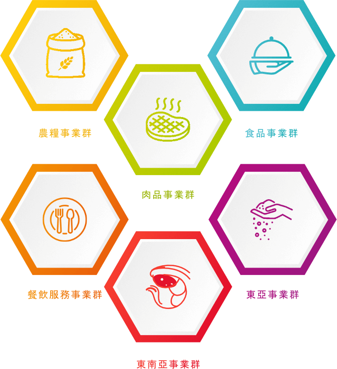 走過一甲子的歲月,大成集團(tuán)以誠信、謙和的心,開啟前瞻願景,現(xiàn)已建立禽畜水產(chǎn)從育種、養(yǎng)殖、飼料、電宰、加工等垂直整合系統(tǒng),並將油脂與事業(yè)擴(kuò)展,同時延伸到餐飲及物業(yè)管理等營運項目。分屬在農(nóng)糧、肉品、食品、餐飲服務(wù)、東南亞及東亞六大事業(yè)群。
