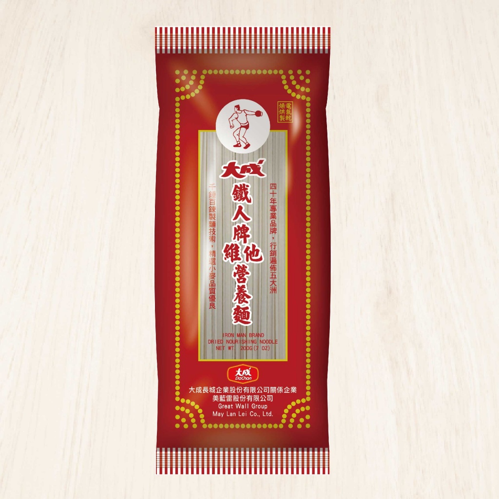 麵條要好吃,說穿了不外乎來自那製麵技術(shù)和麵粉品質(zhì)!而大成鐵人麵嚴(yán)選精心調(diào)配之黃金比例熟成麵粉,加上傳承自老師傅手感之獨(dú)門製麵技術(shù),使其麵條帶有淡淡自然麵粉香、並有滑順帶勁不軟爛的手工麵口感,且保證絕無添加防腐劑及化學(xué)色素等不良添加物。只要放入滾水約5分鐘左右起鍋,再搭配各式中西方特色醬料,就能輕鬆享用最精緻的風(fēng)味佳餚!