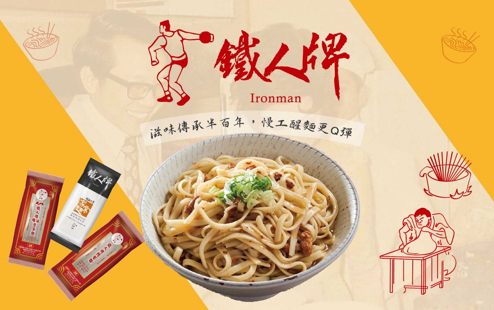 鐵人麵自品牌創(chuàng)立至今,已陪伴臺(tái)灣人走過數(shù)十年風(fēng)華歲月,是家中老一輩從小吃到大的指定品牌,難能可貴的是其用心維繫不變的優(yōu)良麵條品質(zhì),其迷人麵粉香氣及滑順口感令人記憶猶新、難以忘懷!也因此受到許多旅居海外人士喜愛,並指定成為臺(tái)灣最佳伴手禮,至今在全世界皆可見其產(chǎn)品蹤跡,成為臺(tái)灣一大銷售奇蹟!