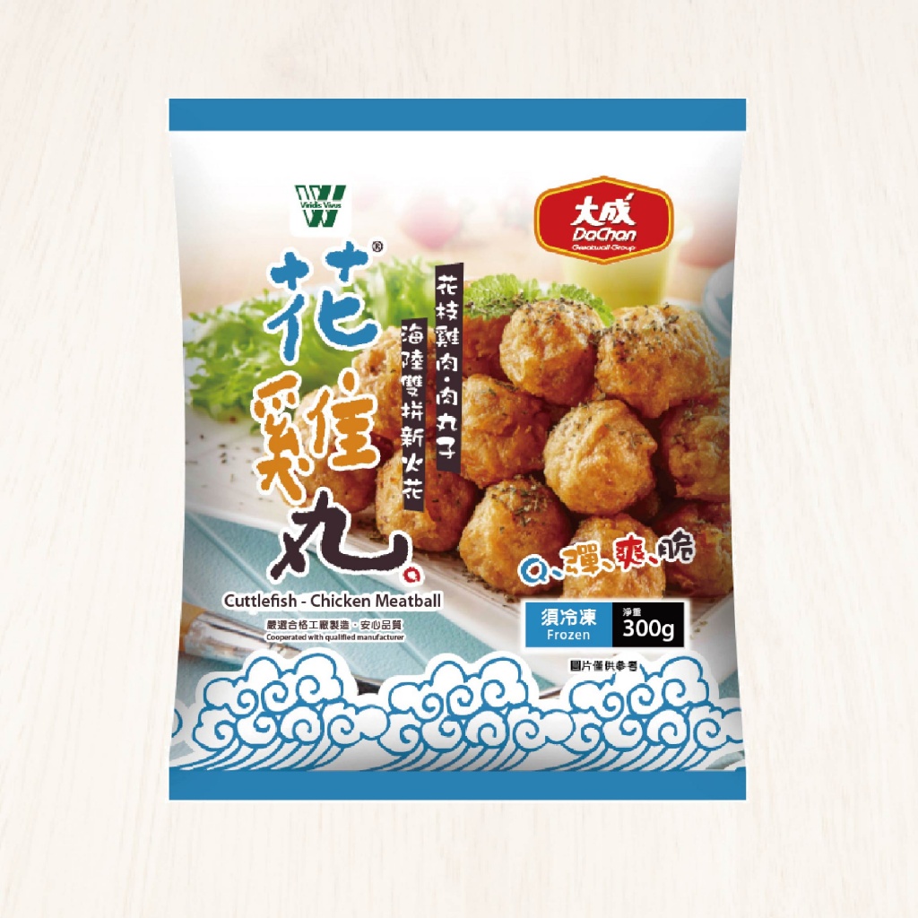 和市售競品比較(一般貢丸&花枝丸...等),大成花雞丸主打海陸雙拼(花枝+雞肉特色),嚴(yán)選上等遠(yuǎn)洋花枝&優(yōu)質(zhì)雞腿肉製作,口感上完美融合雞肉滑順咬感和水產(chǎn)鮮Q滋味,加上獨(dú)門特殊調(diào)味(含胡椒提味),不添加硼砂&防腐劑,可口多汁超好吃!一口咬下便可感受海陸雙鮮迸發(fā)的驚艷!